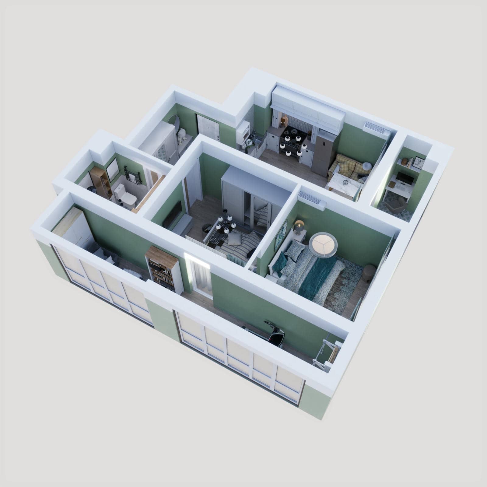 Главная / Дизайн-проекты / 2 кк · 54,57 м²